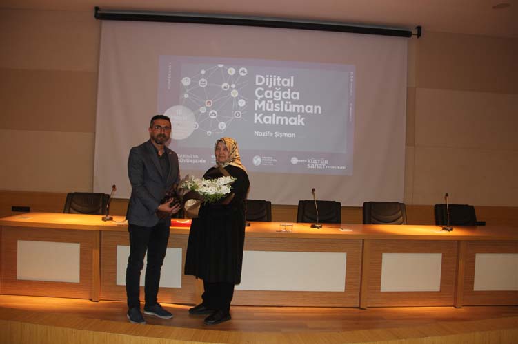 Nazife Şişman, “İçinde bulunduğumuz teknoloji bize ne yapıyor?”, “Gündelik hayatımızı nasıl değiştiriyor?”, “İnsan olduğumuzu tanımlamamızı nasıl değiştiriyor?”, “Hayatı ve ölümü bu teknolojiler çerçevesinde nasıl algılıyoruz?” gibi soruların İlahiyat Fakültesi öğrencilerini yakından ilgilendirdiğini belirterek bu soruların mutlaka gündemimizde olması gerektiğini söyledi. Şişman “Şu an biz dijital teknolojinin içinde nasıl bir dönüşüm yaşıyoruz mutlaka zihnimizde soru olarak kalmak zorunda” ifadelerini kullandı.
