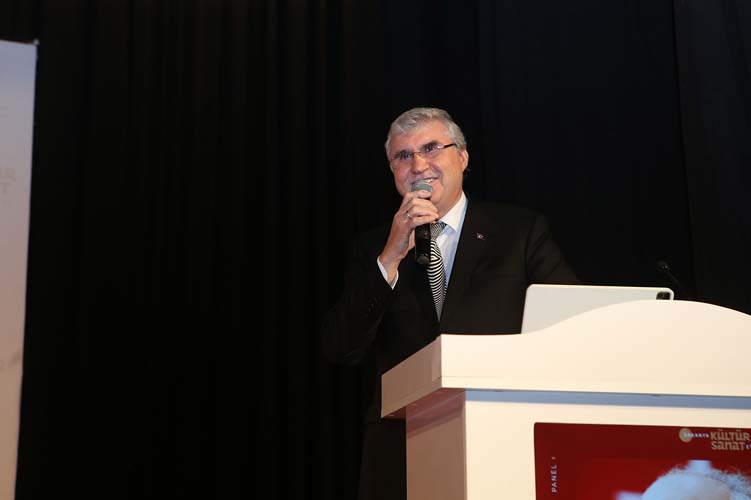 Dr. Öğr. Üyesi Mesut Koçak, “Rahmetli Karakoç tarihi, medeniyetin en önemli parçalarından birisi olarak görüyor. Geçmişe önemli ölçüde yönelinmesi gerektiğini ve İslam medeniyetinin tekrar diriltilmesi gerektiğini savunur. Tarihin ibretlerle dolu olduğunu, dolayısıyla tarihi bilmenin toplumsal olarak karşılaşılabilecek tüm sıkıntılara bir anlamda hazırlıklı olmak olduğunu savunmaktadır. Bir toplumun kendi idealini oluşturması oldukça önemli olduğunu savunan Karakoç, aynı zamanda tarihin günlük politikalara kurban etmeden ciddiyetle ele alınması gerektiğini savunur” diye konuştu.