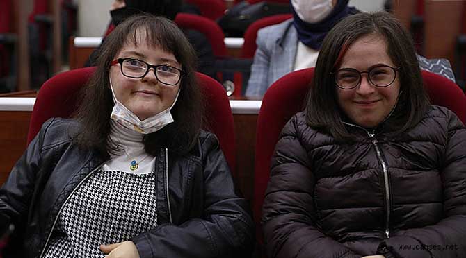 ailelerini Büyükşehir Belediyesi meclis salonunda ağırladı. Down sendromlu