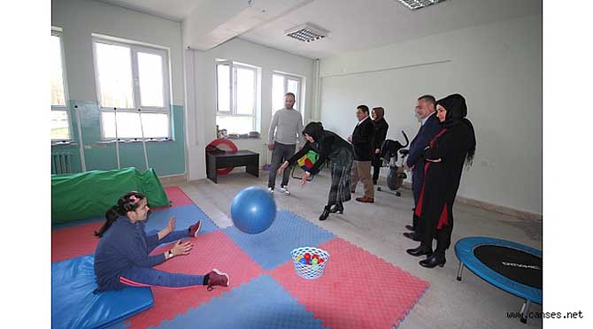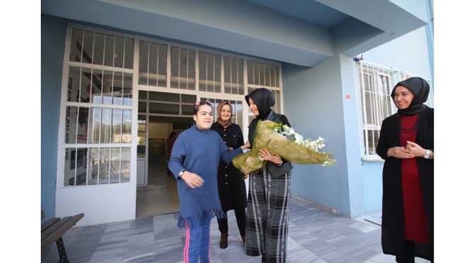 Okulda eğitim gören öğrencilerin çiçek takdimiyle kapıda karşılanan Durmuş, özel çocuklarla yakından ilgilendi.