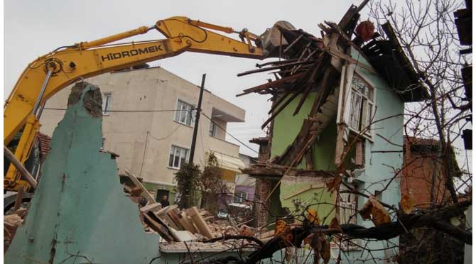 bir şekilde yıkılıyor. Metruk bina yıkımları kapsamında Tabakhane, Dilmen ve