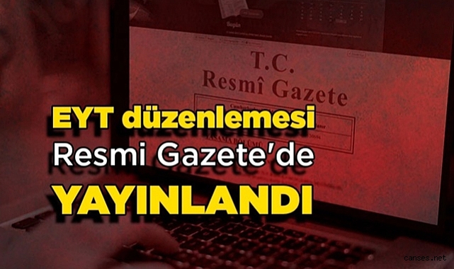 Milyonların merakla beklediği haber geldi. "EYT Resmi Gazete'de yayınlandı mı, EYT ne oldu" sorusunun cevabı merak edilıyordu. Başkan Recep Tayyip Erdoğan iradesiyle yaş şartı olmadan yapılan ve yaklaşık 5 milyon kişiye emeklilik yolunu açacak EYT düzenlemesi Resmi Gazete'de yayınlandı ve yürürlüğe girdi. EYT yasası büyük deprem felaketi nedeniyle Meclis'te bekliyordu. Başkan Erdoğan'ın talimatı sonrası yasa hızla Meclis'ten geçti ve bugün de Resmi Gazete'de yayınlandı.