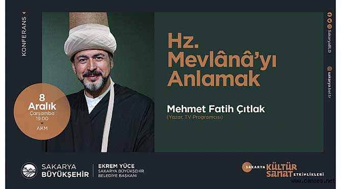 Büyükşehir Aralık Kültür Sanat Etkinlikleri, 8 Aralık Çarşamba günü gerçekleştirilecek ‘Hz. Mevlana’yı Anlamak’ isimli konferans ile devam edecek. Mehmet Fatih Çıtlak’ın konuşmacı olarak katılacağı program AKM’de saat 19.00’da başlayacak.