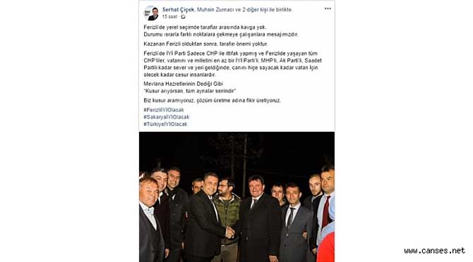 İYİ Parti Ferizli Belediye Başkan adayı Serhat Çiçek, AK Parti Ferizli Belediye Başkan adayı İsmail Gündoğdu ile karşılaştığı sırada çekilen bir fotoğrafı sosyal medya hesabından paylaşarak altına yazdığı mesaj büyük yankı uyandırdı.