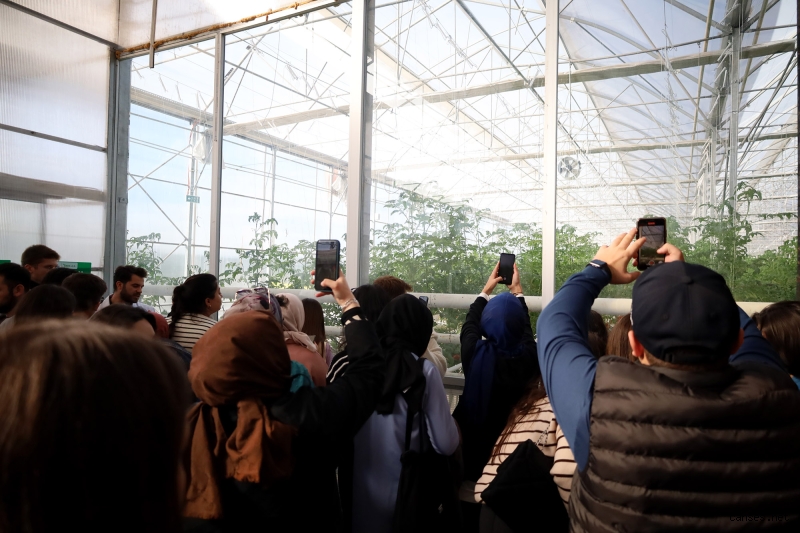 Jeotermal ısıtmalı tam otomasyona sahip yeni nesil topraksız tarım serası Seracılık Mükemmeliyet Merkezi’ni büyük bir merakla inceleyen öğrenciler 53 bin metrekarelik alanda yıl boyu süren üretim aşamalarını izledi. Tozlaşmanın bambus arılarıyla sağlandığı, dünyada ilk olan bazı teknolojilerin kullanıldığı seraya hayran kalan gençler, önemli notlar çıkardı.