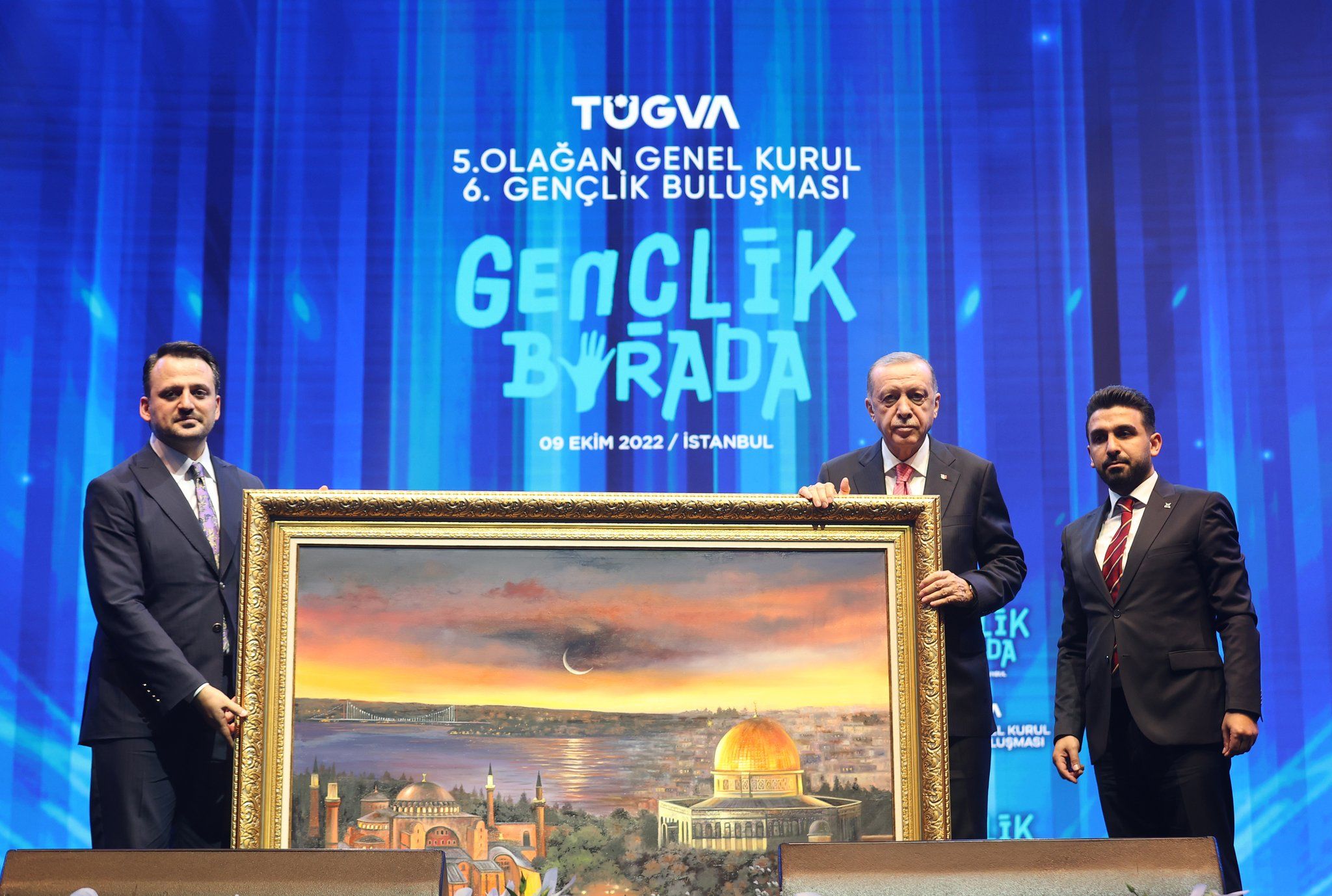 “Bugün TÜGVA, 81 il ve 571 ilçedeki temsilcilikleriyle, bünyesindeki 41 yurt, 40 icathane, 80 kıraathane, 300 gençlik merkeziyle, 300 bini aşkın üyesiyle ülkemizin en büyük gençlik hareketi hâline gelmiştir.” Diyen Cumhurbaşkanı Sn. Recep Tayyip Erdoğan, sözlerine “TÜGVA, bu ülkenin ve dostlarının gençlerini, milletimizin ve onunla birlikte tüm insanlığın hayrına çalışmalar yürütecek bilince ve birikime sahip kılmak için verdiğimiz mücadelenin en önemli kurumsal markalarından biridir.” şeklinde devam etti.