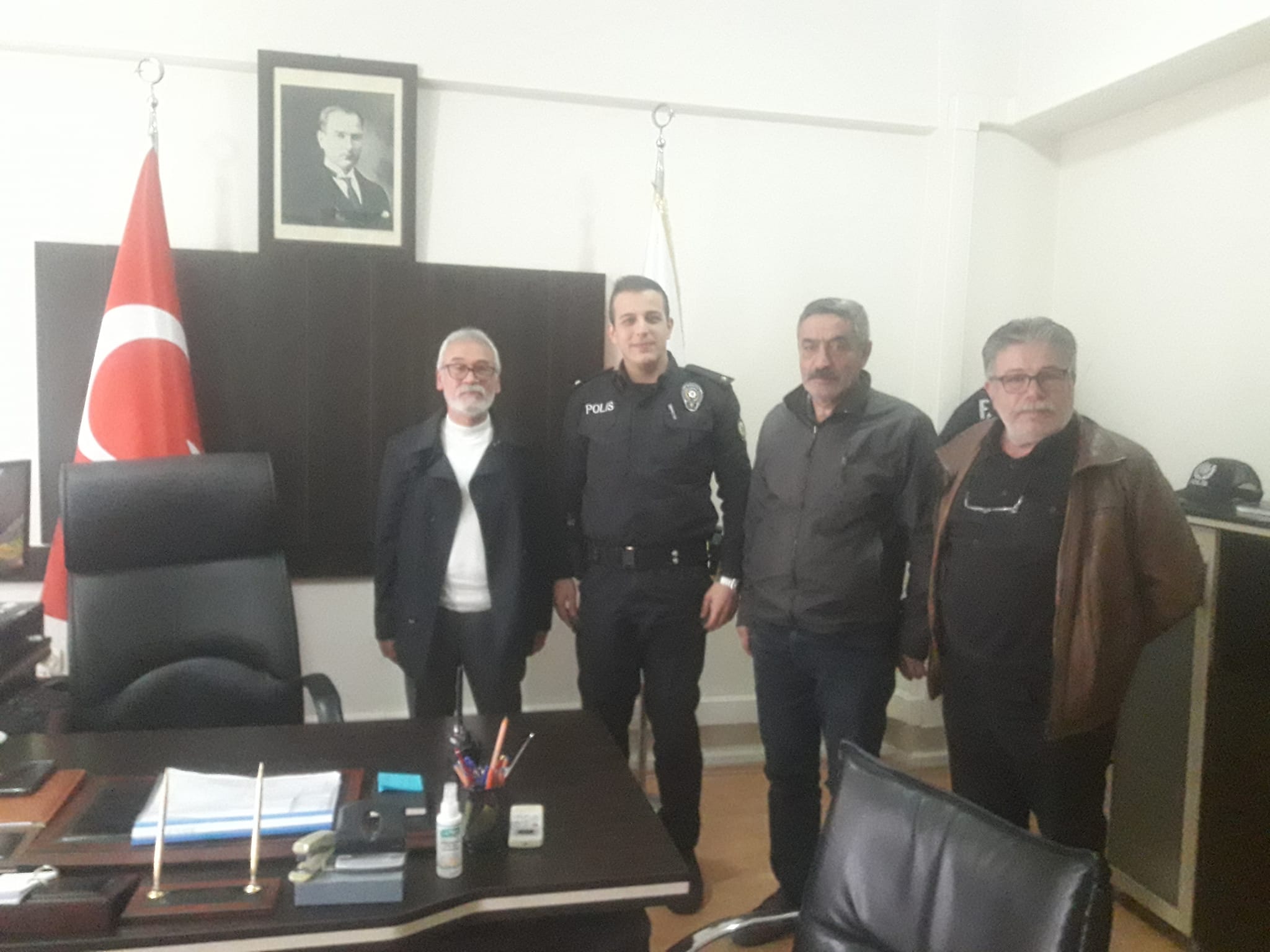 Geyve’den TUVİK yönetim kurulu üyesi ve TFF Sakarya Saha Komiserlerinden Sami Bölükbaş, fırıncı esnaflarından Nail Arslan ve emekli PTT müdürü Faruk Pehlivan taraklı Emniyet Amirliğina atanan Uğur Doğan’ı makamında ziyaret ederek hayırlı olsun dileklerinde bulundular
