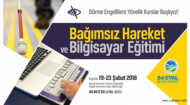 Sakarya Büyükşehir Belediyesi Engelli Hizmetleri Şube Müdürlüğü tarafından Görme Engellilere yönelik ‘Bağımsız Hareket ve Bilgisayar Eğitimleri’ kursları başlıyor. Adapazarı Sosyal Gelişim Merkezi’nde gerçekleştirilecek eğitimlere başvurular 19 Şubat Pazartesi günü başlayacak.