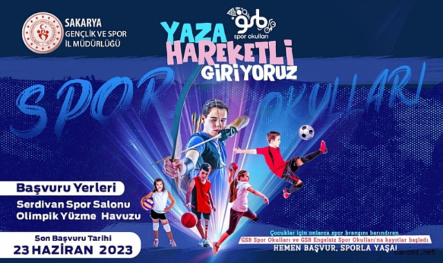 Sakarya Gençlik ve Spor İl Müdürlüğü olarak, sporu toplum içinde alışkanlık haline getirebilmek, öncelikle çocuk ve gençlerimizi spor yapmaya teşvik etmek, sporu sevdirmek, kötü alışkanlıklardan uzaklaştırmak, küçük yaşlarda gençlere spor kültürünü yerleştirmek ve çocukların yaz aylarında vakitlerini daha verimli geçirmeleri amacıyla GSB Spor Okulları 5-18 yaş aralığındaki tüm gençlere kapılarını açıyor.