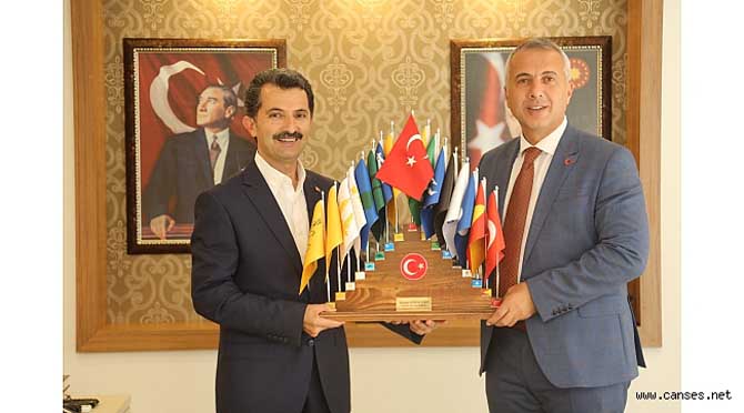 Başkan Babaoğlu ziyaretlerinde başkanlara Hendek yöresel ürünleri sepeti ve 17 Türk devletinin bayraklarının bulunduğu ahşap kaideli anlamlı seti hediye etti.