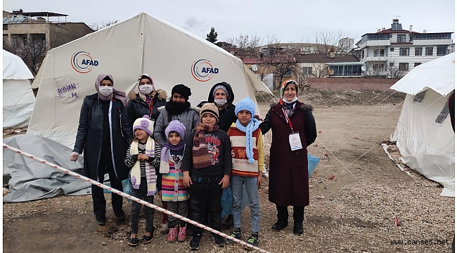 personeli tarafından kaşkol ve bereler Elazığ’da deprem nedeniyle çadırlarda