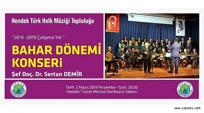 Hendek Türk Halk Müziği Topluluğu, 2018-2019 çalışma yılı Bahar Dönemi Konserinde, Şef Doç. Dr. Sertan Demir yönetiminde muhteşem bir konser vermeye hazırlanıyor. 2 Mayıs Perşembe günü saat 20.00’ de Ticaret Merkezi Konferans Salonu’nda verilecek olan konserde birbirinden güzel eserler okunacak. Konser ücretsiz olup tüm müzikseverler davetlidir.