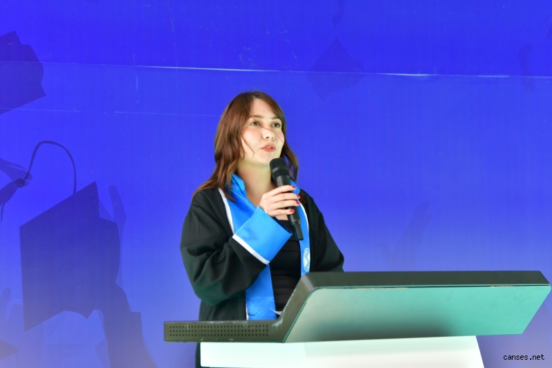 Fakülte birincisi Eda Arslan mezunlar adına bir konuşma yaptı. Diploma yemininin ardından protokol ve akademisyenler tarafından mezuniyet belgeleri takdim edildi.