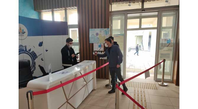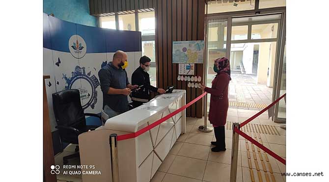 Müdürlük binası girişindeki Danış görevlileri tarafından personel dâhil tüm vatandaşlara HES Kodu kontrolü uygulanıyor. HES Kodu olmayan vatandaşlar içeriye alınmıyor.
