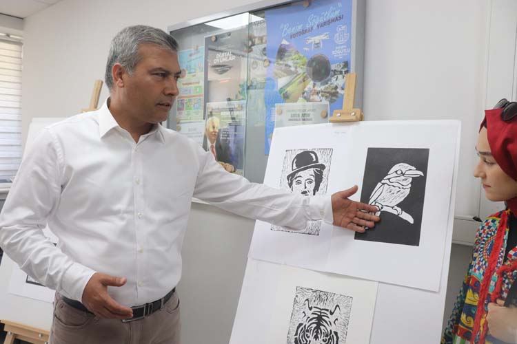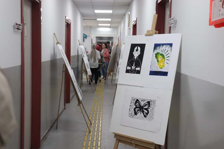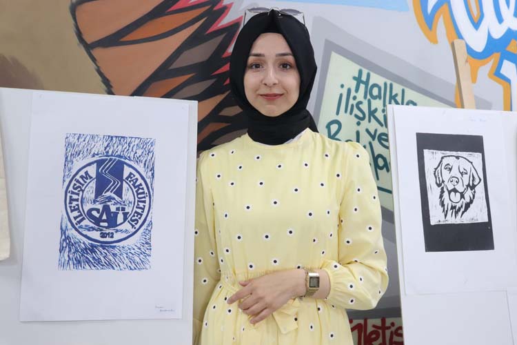 Linöl baskı sergisini düzenleyen Feyza Kıvırcı sergi hakkında, “Linöl baskı tamamen güzel sanatlara bağlı ama İletişim ve Tasarımı Bölümünün de güzel sanatlardan bir farkı olmadığını düşünüyorum. Öğrencilerin boyalara, tinerlere dokunması gerektiğini düşündüm. Eski zamanlarda fotoğraf baskısının nasıl yapıldığını bilmeleri ve kendilerine hatıra kalması için bir eser yapılmasını istedim. Deriye boyama işlemi yaptık. Kâğıda da baskısını yaptıktan sonra böyle güzel eserler ortaya çıktı. Bu baskıyla İletişim ve Tasarımı Bölümü öğrencilerinin farkını ortaya koyduğumuzu düşünüyorum.” şeklinde konuştu.