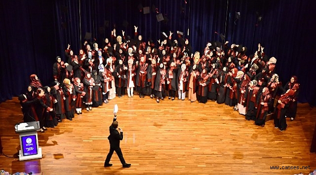 Tören mezunlara plaket takdimi, yemin ve kep atma ile son buldu.