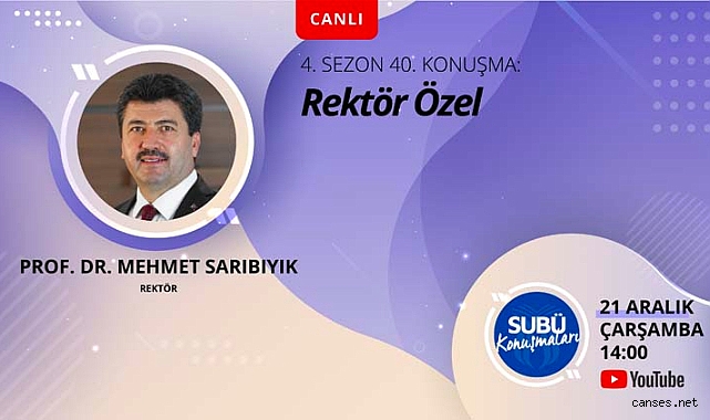 Sakarya Uygulamalı Bilimler Üniversitesi (SUBÜ) tarafından düzenlenen SUBÜ Konuşmaları’nın 40’ıncı konuşmacısı SUBÜ Rektörü Prof. Dr. Mehmet Sarıbıyık oldu. ‘Rektör Özel’ başlıklı söyleşinin moderatörlüğünü İletişim Koordinatör Yardımcısı Öğretim Görevlisi İlknur Çakar üstlendi. Söyleşide 2022-2023 Akademik Yılı Güz Dönemi, +1 Eğitim Modeli, akreditasyon çalışmaları, uluslararasılaşma faaliyetleri, teknoloji yarışmaları, sosyal faaliyetler ve kariyer merkezi faaliyetleri konuşuldu. Ayrıca yayın esnasında öğrencilerden gelen sorular cevaplandırıldı.