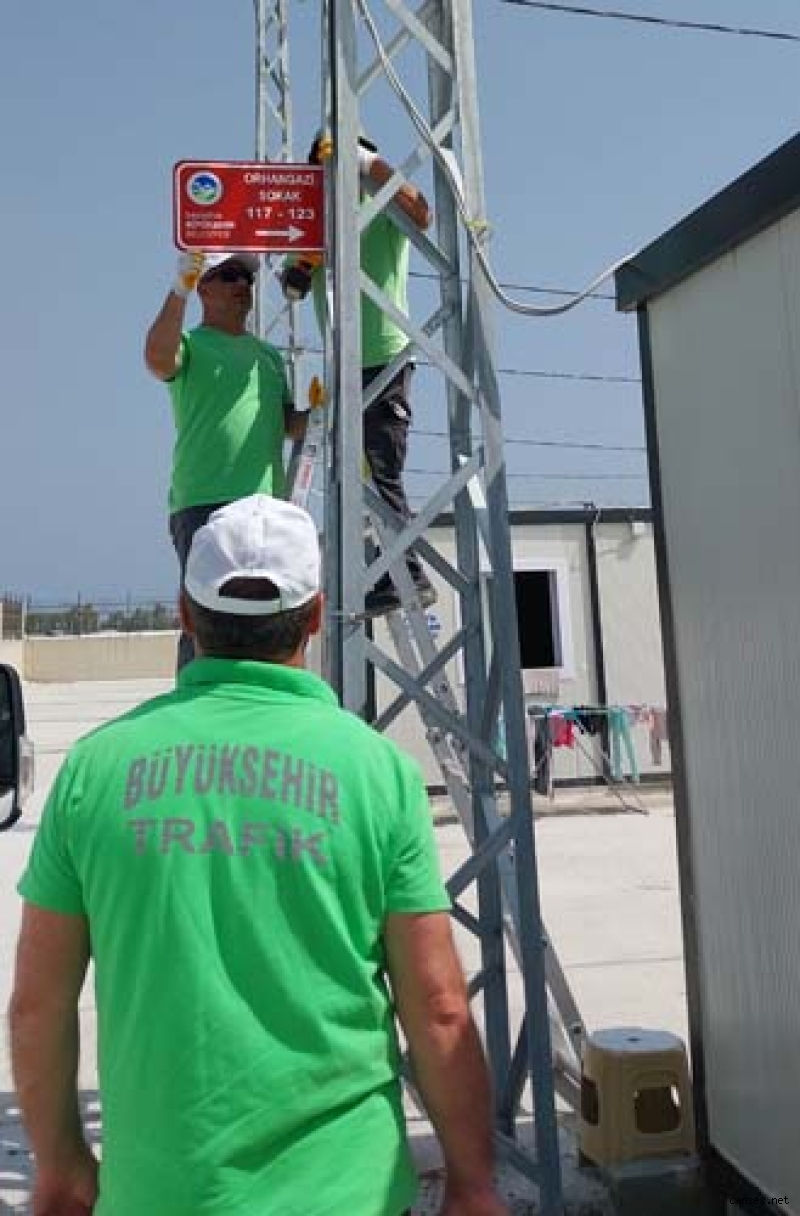 Büyükşehir tarafından kurulan 250 konteynerlik kentin sokak tabelaları ve numarataj işlemleri tamamlandı. Büyükşehir Belediyesi Yol Bakım ve Altyapı Koordinasyon Başkanlığı bünyesinde faaliyet gösteren Trafik Şube Müdürlüğüne bağlı ekipler tarafından sokak tabelaları yapılıyor ve sokak giriş çıkışlarına yerleştiriliyor. Kentte Melen Botanik, Adakule, Kuzuluk, Longoz, Palmiye, Orhangazi, Ayçiçek Vadisi ve Çark Caddesi gibi Sakarya'da tanınan ve öne çıkan doğal kültürel yerlerin isimleri sokaklara veriliyor. Sakarya'nın kültürel ve doğal güzelliklerini yansıtan sokak ve cadde isimleriyle şehrin minyatür bir yansıması olarak tasarlanan tabelalar konteyner kent sakinleri için hazır hale getirildi.