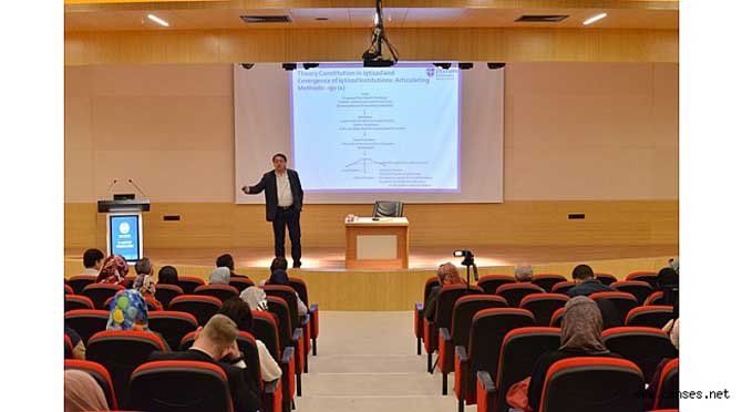 SAÜ İlahiyat Fakültesi konferans salonunda düzenlenen konferansa Durham Üniversitesi İslam Ekonomisi ve Finansı Merkezi Direktörü Prof. Dr. Mehmet Asutay, konuşmacı olarak katıldı.