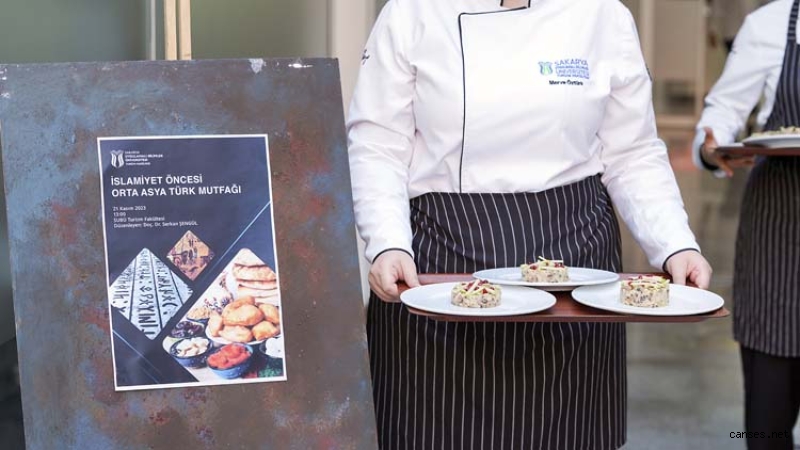 Sakarya Uygulamalı Bilimler Üniversitesi (SUBÜ) Turizm Fakültesi Gastronomi ve Mutfak Sanatları Bölümü tarafından ‘İslamiyet Öncesi Orta Asya Türk Mutfağı’ başlıklı bir etkinlik düzenlendi. Bölüm Başkanı Doç. Dr. Serkan Şengül koordinatörlüğünde lisans ve lisansüstü öğrencilerce hazırlanan menü; SUBÜ Rektör Yardımcıları Prof. Dr. Sinan Serdar Özkan, Prof. Dr. Ali Fuat Boz ve Prof. Dr. Oğuz Türkay, Genel Sekreter Dr. Öğretim Üyesi Gökhan Ergen, Sapanca İlçe Emniyet Müdürü Aslı Gül İlhan, Jandarma Üsteğmen Ahmet Gökkaya, Turizm Fakültesi Dekanı Prof. Dr. Mehmet Sarıışık ve akademisyenler tarafından tadıldı. Öğrencilerin yemek ve sunumları katılımcılardan tam not aldı.