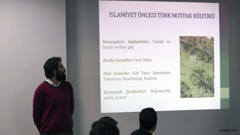 Yemek öncesi yapılan sunumda katılımcılara ‘İslamiyet Öncesi Orta Asya Türk Mutfağı’ ile ilgili bilgiler sunularak Orta Asya göçebe kültüründe tüketilen yiyecek ve içecekler hakkında detaylı malumat verildi. Daha sonra modern Türk mutfak kültürüne uyarlanmış Orta Asya Türk Mutfağı tabakları servis edildi. Katılımcılara başlangıç olarak pastırmalı ve çökelek peynirli mini dürüm, yoğurtlu kavurgaç ve kuru meyvelerden oluşan atıştırmalık tabağı sunuldu. Ardından sucuklu yufka kruton ile servis edilen beyaz tarhana çorbası, bozkır tahılları salatası, kaymaklı buğday pilavı ile birlikte kuzu şiş sunumu yapıldı. Tatlı olarak ise susam, fındık ve pekmez soslu helva katılımcıların beğenisine sunuldu. Etkinlik boyunca tarihî bir yolculuk yapılarak Orta Asya Türk Mutfağını tanıma fırsatı verildi ve günümüzdeki gastronomik yaklaşımlarla lezzetler deneyimlendi.