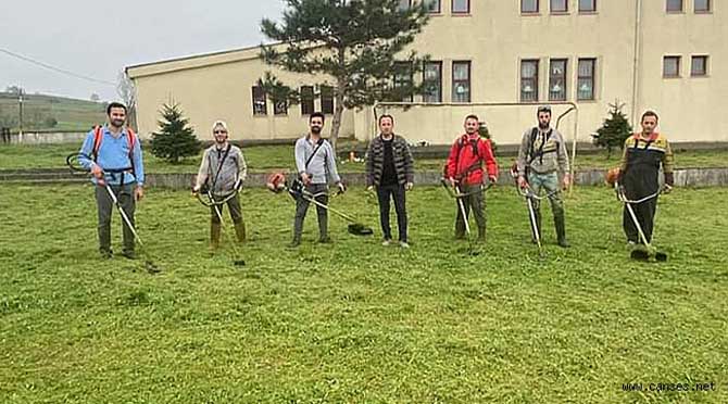 okul bahçesi, oyun parkları ve yol kenarlarında büyüyen otları biçtiler.