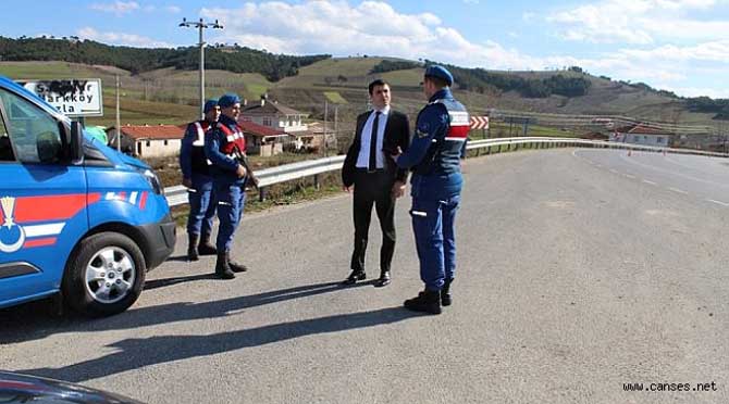 Taraklı Kaymakamı Okan Dağlı İlçe Jandarma Komutanlığı’nın yol kontrol uygulamasına iştirak etti.