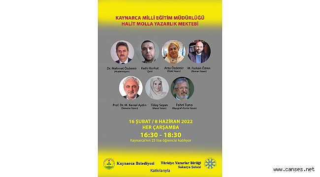 Kaynarca Belediye Başkanlığı ve Türkiye Yazarlar Birliği Sakarya Şubesiyle yapılan protokol çerçevesinde gerçekleşecek Halit Molla Yazarlık Mektebi’nde, şubeye üye şair ve yazarlar ücretsiz olarak gençlere yazarlık eğitimi verecekler. Akademisyenler Prof. Dr. M. Kemal Aydın ve Dr. Mehmet Özdemir, şair Kadir Korkut, Öykü yazarı Arzu Özdemir, Roman yazarı M. Furkan Özren, Portre yazarı Fahri Tuna ve Masal yazarı Tülay Sayan’ın eğitim vereceği projenin bitim tarihi olan 8 Haziranda, katılan öğrencilerin eserlerinden bir kitap yayımlanacak ve görkemli bir edebiyat gecesi düzenlenecek. Diğer ilçelere de örneklik teşkil edecek projede öğrencilerin kitap ihtiyacıyla yazarların gelip gitme ve yeme içmelerinin Kaynarca Belediyesi’nce üstlenildiği öğrenildi.