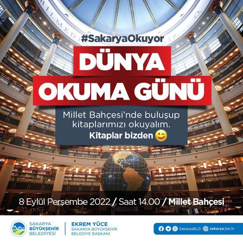 Büyükşehir Belediyesi’nden yapılan açıklamada, “8 Eylül Dünya Okuma Günü münasebetiyle tüm kitapseverler olarak bir araya geliyoruz. Millet Bahçesi’nde buluşup kitaplarımızı okuyalım, Kitaplar bizden. Tüm hemşerilerimizi bekliyoruz” ifadelerine yer verildi.