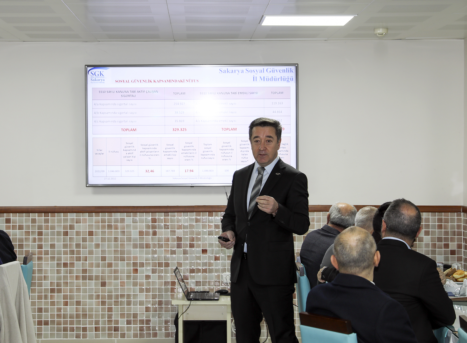 Toplantının açılış konuşmasını yapan SGK İl Müdürü Erhan Çavuş, “Sinerji Grubunu müdürlüğümüzde ağırlamaktan onur ve mutluluk duyuyoruz. SGK insan hayatı için önemli yeri olan bir kurum. İş kazası, meslek hastalığı, hastalık, analık, malullük, yaşlılık, ölüm ve işsizlik gibi risklere karşı güvence sağlıyor. Ülkemizin ana gündemlerinden birisi emeklilikte yaşa takılanlara ilişkin düzenleme. Emeklilik dediğimiz yaşlılık riskinin ortaya çıkmasıdır. Emekli olmak isteyen kişi ‘benim yaşlılık riskim ortaya çıktı. Çalışamaz hale geldim. Sistem beni finanse etsin’ demektedir. Sosyal güvenlik bunu söylerken EYT ise ‘biz 25 sene prim ödedik. Dolayısıyla prim süremiz doldu. Bizi emekli yapın’ demektedir. Aslında beklenti ile sistemin ana parametresinin birbirinden bağımsız olduğunu görüyoruz. Mevcut sisteme göre şu anda erkeklerde 1970 doğumluları, kadınlarda 1974-75 doğumluları emekli yapıyoruz. EYT ise yaş haddi uygulamasının kaldırılmasını ve kadınlarda 38, erkeklerde 43 yaşında emekliliğin gelmesi anlamına geliyor. Şu anda ilimizde aktif sigortalı çalışan sayısı 329 bin 325, emekli sayısı ise 187 bin 789. Yani 1,5 çalışan başına 1 emekli düşüyor. Eğer EYT düzenlemesi gerçekleşirse şehrimizde 1,2 çalışan başına 1 emekli durumu oluşacak. Özetle şehrimizdeki istihdamı artırmamız gerekiyor.”