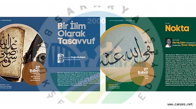 Sakarya Büyükşehir Belediyesi Kültür ve Sosyal İşler Dairesi Başkanlığı tarafından düzenlenen Şubat Kültür Sanat Etkinlikleri 2 yeni etkinlik ile devam edecek. 27 Şubat Çarşamba günü ilk olarak Uludağ Üniversitesi Öğretim Üyesi Prof. Dr. Mustafa Kara’nın konuşmacı olarak katılacağı ‘Bir İlim Olarak Tasavvuf’ isimli konferans saat 13.00’ da SAÜ İlahiyat Fakültesi’nde gerçekleştirilecek. Ardından saat 18.00’da Moderatörlüğünü Enver Gülşen’in yapacağı Film Gösterimi ve Söyleşi programı gerçekleştirilecek. ‘Nokta’ filminin Yönetmeni Derviş Zaim Sakaryalı sanatseverler ile buluşacak.