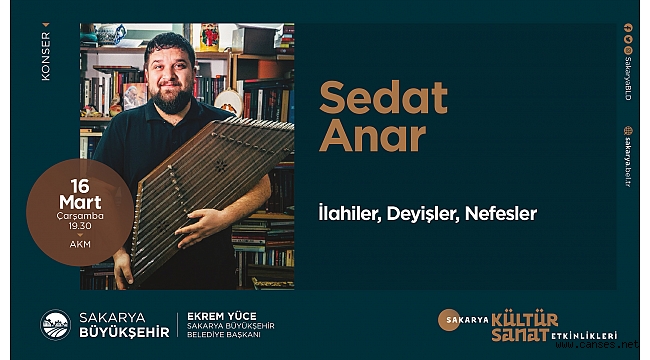 Büyükşehir Belediyesi Mart Kültür Sanat Etkinlikleri, 16 Mart Çarşamba günü Sedat Anar’ın konuk olacağı ‘İlahiler, Deyişler, Nefesler’ isimli konser ile devam edecek. Program AKM’de saat 19.30’da başlayacak.