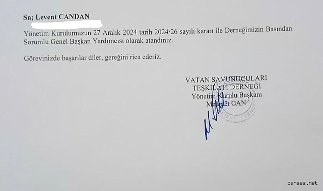 Vatan Savunucuları Teşkilatı Derneği, 27 Aralık 2024 tarihinde alınan 2024/26 sayılı yönetim kurulu kararıyla Levent Candan'ı Basından Sorumlu Genel Başkan Yardımcısı olarak atadı. Resmi yazı, 30 Aralık 2024 tarihinde dernek başkanı Mehmet Can tarafından imzalanarak duyuruldu. Bu atama, Levent Candan'ın medya alanındaki tecrübesi ve yetkinliklerini derneğin çalışmalarına entegre etme hedefiyle gerçekleşti.Medya alanındaki deneyimiyle katkı sağlayacakLevent Candan, gazetecilik dünyasındaki köklü geçmişiyle tanınıyor. LC Haber Ajansı’nın İmtiyaz Sahibi ve www.lchaber.com'un Genel Yayın Yönetmeni olan Candan, ulusal ve uluslararası birçok projeye liderlik etmiş, medya yönetimindeki uzmanlığı ile sektörde saygın bir yer edinmiştir. Yeni göreviyle birlikte, derneğin kamuoyundaki görünürlüğünü artırmayı ve sosyal sorumluluk projelerinin daha geniş kitlelere ulaşmasını hedefliyor.CANDAN: "Bu görevden onur duyuyorum"*Levent Candan, atama sonrası yaptığı açıklamada şu ifadeleri kullandı: "Vatan Savunucuları Teşkilatı Derneği’nin Basından Sorumlu Genel Başkan Yardımcılığı görevine atanmış olmaktan büyük bir onur duyuyorum. Bu önemli sorumluluğu en iyi şekilde yerine getirmek için elimden geleni yapacağım. Derneğimizin çalışmalarını kamuoyuna aktarmak ve hedeflerine ulaşmasında destek olmak için var gücümle çalışacağım."Dernekten destek mesajıDernek yönetimi, Levent Candan'ın görevi boyunca ihtiyaç duyacağı tüm desteğin sağlanacağını belirtti ve kendisine yeni görevinde başarılar diledi. Vatan Savunucuları Teşkilatı Derneği, ülke genelinde vatan savunması bilinci oluşturmak ve sosyal farkındalık projelerini hayata geçirmek için çalışmalarını sürdüren önemli bir sivil toplum kuruluşu olarak dikkat çekiyor. Levent Candan’ın bu görevdeki katkılarının, derneğin vizyonunu genişletmekte önemli bir rol oynayacağı öngörülüyor.