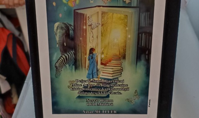 Öğrencilerinin ve velilerinin kendisinden habersiz bir şekilde gerçekleştirdikleri kütüphanenin açılışına toplantı var denilerek davet edilen Mine Öğretmen adının verildiği kütüphane kapısında öğrencileri tarafından çiçeklerle karşılandı.