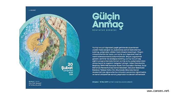 Büyükşehir Şubat Kültür Sanat Etkinlikleri kapsamında 20 Şubat Çarşamba günü saat 18.00’da Gülçin Anmaç’ın eserlerinden oluşan Minyatür Sergisi Sakaryalı sanatseverlerin beğenisine sunulacak.