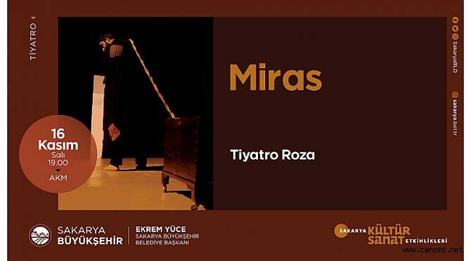 Büyükşehir Belediyesi Kasım Ayı Kültür Sanat Etkinlikleri kapsamında ‘Miras’ isimli tiyatro oyunu AKM’de sahnelenecek. Tiyatro 16 Kasım Salı günü saat 19.00’da başlayacak.