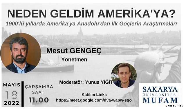 Sakarya Üniversitesi Siyasal Bilgiler Fakültesi Çalışma Ekonomisi ve Endüstri İlişkileri Bölümünden Arş. Gör. Yunus Yiğit moderatörlüğünde gerçekleşen etkinliğe, yönetmen Mesut Genç konuşmacı olarak katıldı. Yönetmen Mesut Genç yaptığı sunumda 1900’lü yıllarda Amerika’ya Anadolu’dan İlk Göçlerin Araştırmalarından ve belgesel yapım sürecinden bahsetti.