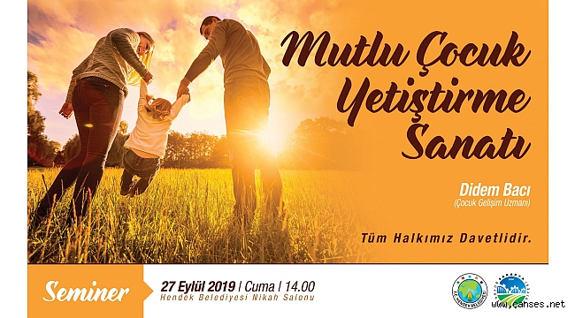 Sakarya Büyükşehir Belediyesi ile Hendek Belediyesi işbirliğinde, 27 Eylül Cuma günü ‘Mutlu Çocuk Yetiştirme Sanatı’ konulu seminer düzenlenecek.