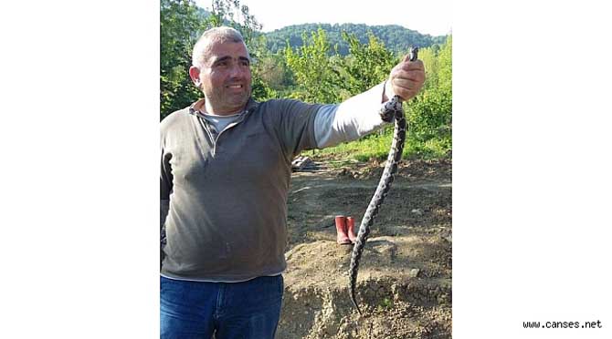 Adapazarı’nda ikamet eden ve hafta sonu tatilini Geyve Fındıksuyu mahallesindeki evinde geçiren İlyas Akyıldız, evinin etrafında temizlik yaparken engerek yılanının nadir görülen türlerinden olan Benekli Engerek yılanını yakaladı.