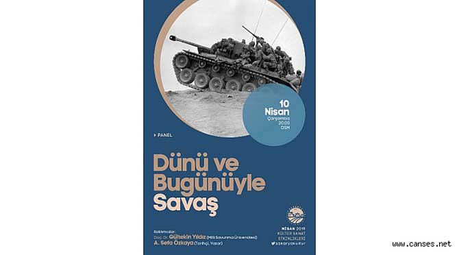 Sakarya Büyükşehir Belediyesi Nisan Kültür Sanat Etkinlikleri ‘Dünü ve Bugünüyle Savaş’ paneliyle devam edecek. Kültür ve Sosyal İşler Dairesi Başkanlığı’ndan yapılan açıklamada, “Nisan Kültür Sanat Etkinliklerimiz 10 Nisan Çarşamba günü ‘Dünü ve Bugünüyle Savaş’ paneli ile devam edecek. OSM’de gerçekleştirilecek programa Doç. Dr. Gültekin Yıldız ve Tarihçi Yazar Sefa Özkaya konuşmacı olarak katılacak. 20.00’da başlayacak etkinliğe tüm kültür sanat dostları davetlidir” ifadelerine yer verildi.