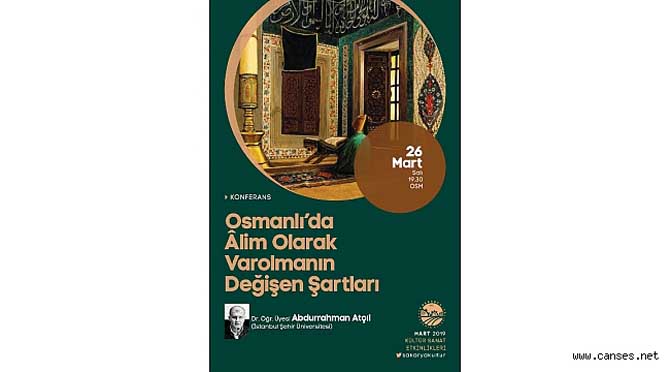 Sakarya Büyükşehir Belediyesi Mart Kültür Sanat Etkinlikleri, 26 Mart Salı günü gerçekleştirilecek ‘Osmanlı’da Âlim Olarak Varolmanın Değişen Şartları’ başlıklı konferans ile devam edecek. Dr. Öğr. Üyesi Abdurrahman Atçıl’ın konuşmacı olarak katılacağı konferans Ofis Sanat Merkezi’nde saat 19.30’da başlayacak. Kültür ve Sosyal İşler Dairesi Başkanlığı’ndan yapılan açıklamada, “Osmanlı’da Alim Olarak Varolmanın Değişen Şartları’ isimli konferans etkinliğimize tüm kültür sanat dostları davetlidir” denildi.