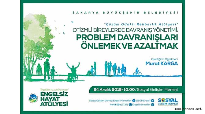 Büyükşehir Belediyesi tarafından düzenlenen Engelsiz Hayat Atölyesi’nde eğitimler devam ediyor. ‘Otizmli Bireylerde Davranış Yönetimi: Problem Davranışları Önlemek ve Azaltmak’ konulu seminer 24 Aralık Salı günü saat 10.00’da SGM’de gerçekleştirilecek.