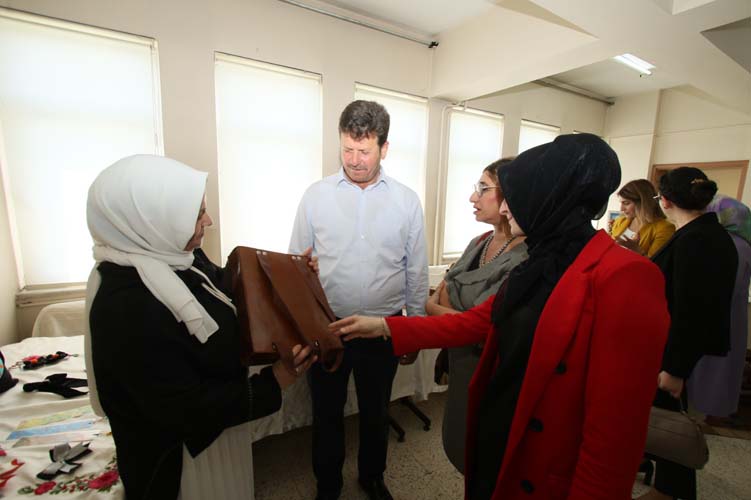 Eşi Dilek Soykan ve Tuğba Bebe’nin eğitmenliğinde özel çocukların annelerin el sanatları ve deri çanta sergisinin açılışını gerçekleştiren ve sergiyi gezen Belediye Başkanı Bilal Soykan, “ Özel çocuklarımızı büyük bir emekle büyüten annelerimizin sergisinin açılışını yaptık. Çok güzel bir sergi olmuş emeği geçen herkesi tebrik ediyorum. Annelerimizin özel çocuklarımız üzerindeki emeklerine şahit oluyoruz. Hepsinden Allah razı olsun” dedi.