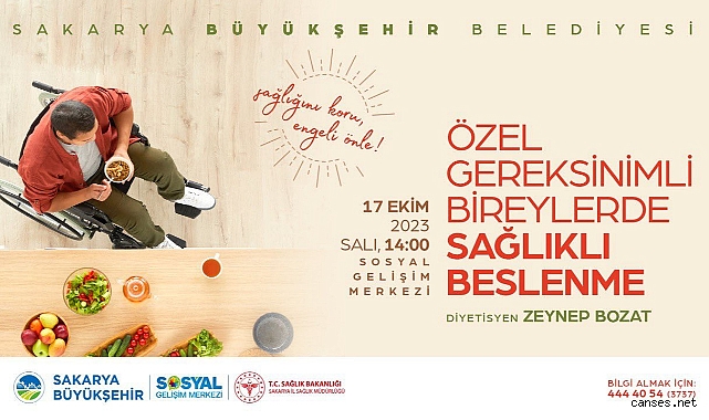 Büyükşehir Belediyesi ve İl Sağlık Müdürlüğü ortaklığıyla düzenlenecek olan “Özel Gereksinimli Bireylerde Sağlıklı Beslenme” konulu konferans, 17 Ekim Salı günü katılımcılarla buluşacak. Sosyal Gelişim Merkezi’nde saat 14.00’da başlayacak olan programa, Diyetisyen Zeynep Bozat konuşmacı olarak katılacak.