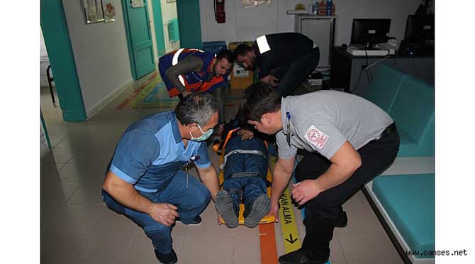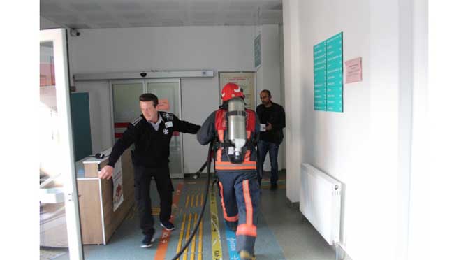kapsamında yangın tatbikatı yapıldı. Senaryo gereği hastanede yaşanan olası bir