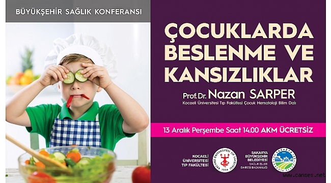 Sakarya Büyükşehir Belediyesi Sağlık İşleri Dairesi Başkanlığı ve Kocaeli Üniversitesi Tıp Fakültesi işbirliği ile düzenlenen sağlık konferansları devam ediyor. Bu kapsamda ‘Çocuklarda Beslenme ve Kansızlıklar’ konulu konferans katılımcılar ile buluşacak.