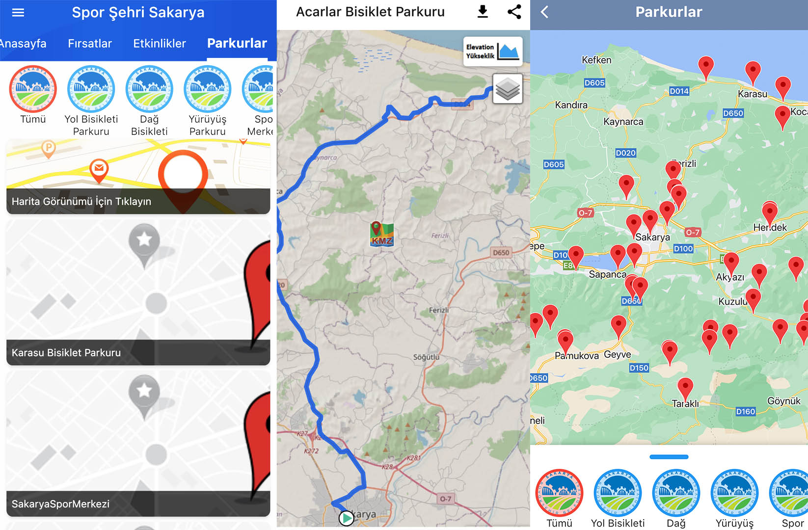 Bisiklet Dostu Şehir unvanlı Sakarya’da, Büyükşehir Belediyesi tarafından ‘Sakarya Bisiklet Yolları Haritası’ hazırlandı. Bu harita üzerinde rotalar belirlenerek şehir merkezi, yaylalar ve ovaları da kapsayan rotalar oluşturulan dijital uygulamaya işlendi. Uygulamada 49 dağ ve şehir parkurundan oluşan 2 bin 500 kilometre uzunluğundaki rota, bisiklet ve doğa tutkunlarının kullanımına açıldı.
