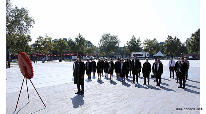 Törende ilk olarak Atatürk Anıtı'na çelenk konulurken, daha sonra saygı duruşunda bulunuldu ve İstiklal Marşı okundu.