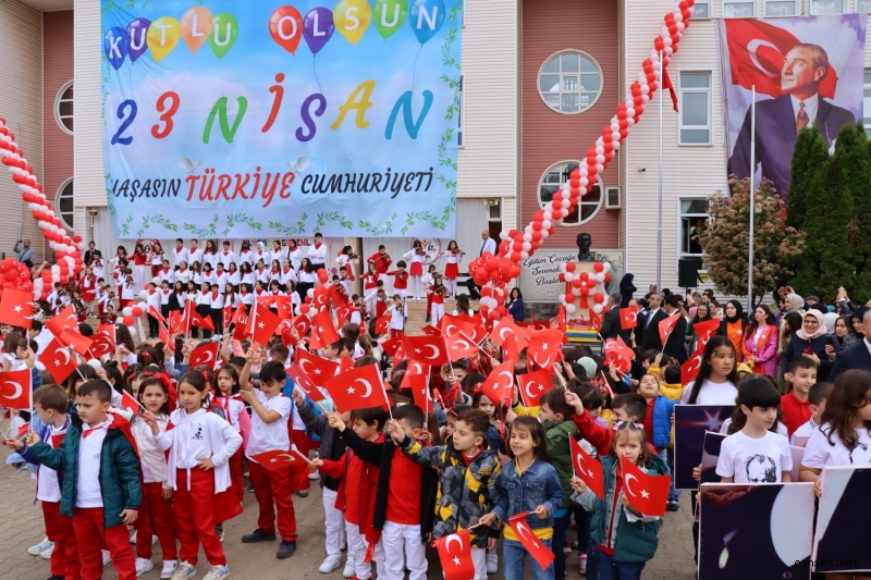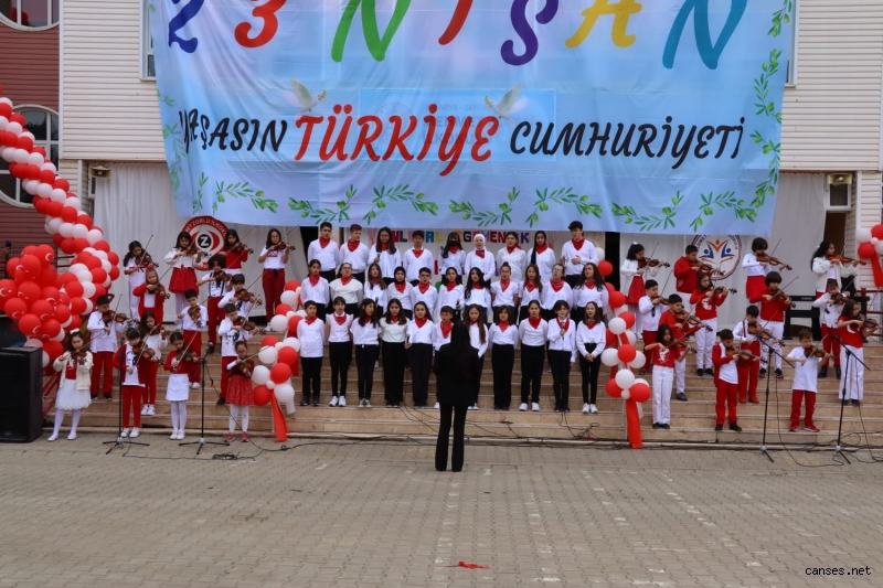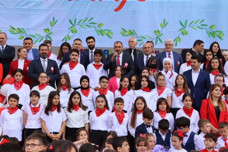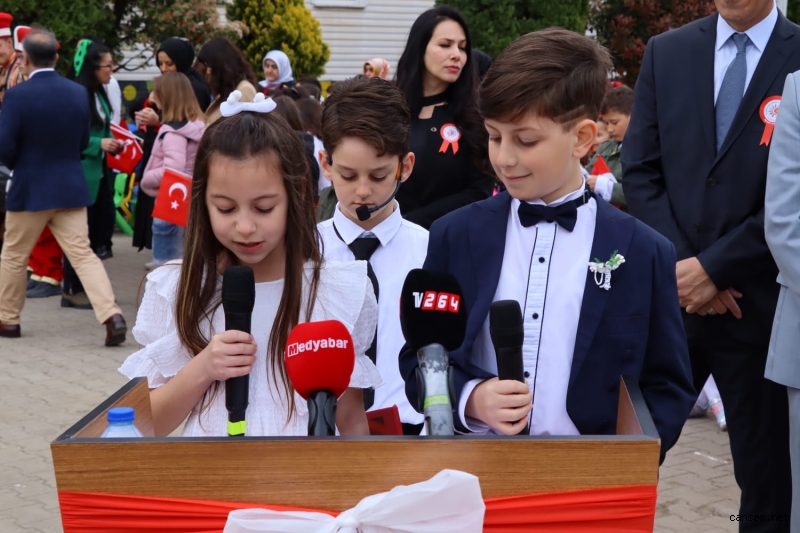 İl Millî Eğitim Müdürü Savaşçı konuşmasında; “Türkiye Büyük Millet Meclisimizin açılışının 103. yıldönümünü, 23 Nisan Ulusal Egemenlik ve Çocuk Bayramı’nı büyük bir gururla kutluyoruz. Bu vesileyle hepinizi sevgiyle, muhabbetle selamlıyorum. Tarihimizin en önemli dönüm noktalarından biri olan 23 Nisan 1920’de henüz Cumhuriyet kurulmamıştı ama Gazi Mustafa Kemal Atatürk, demokrasinin altyapısını hazırlıyor ve üzerine titrediği çocuklar için ülkenin geleceğini kuruyordu. Bugün çocuklarımız dünya çocuklarıyla beraber dünyaya sevgi, barış ve kardeşlik mesajları verebiliyorsa, bunu büyük önder Atatürk’ün önderliğinde Türkiye Büyük Millet Meclisi çatısı altında verilen mücadeleye borçluyuz. Ülkemizin ve İnsanlığın Geleceği, Yeni Bir Dünyanın Habercisi Sevgili Çocuklar, bir milletin varlığı ve bütünlüğü, bütün maddi manevi değerleri, ideali ve inançları ile oluşan ortak bir güce sahip olmasına bağlıdır. 23 Nisan’ın anlamını kavrayarak, içinize sindirerek, size emanet edilen ulusal egemenliğe bağımsızlığa büyük bir bilinçle sahip çıkın. Çok çalışarak, çok okuyarak kendinizi her bakımdan geliştirin. Hayatla bağlarınızı da asla koparmayın. Derslerinizin dışında spordan müziğe, resimden edebiyata ne olursa olsun kendinizi mutlu hissedeceğiniz bir alanda mutlaka çalışın. Hepinizi çok sevdiğimizi ve sizlere güvendiğimizi, en iyi şartlar altında kaliteli bir eğitim almanız için tüm imkânlarımızı seferber ettiğimizi ifade etmek istiyorum. Öğrenmekten, düşünmekten, uygulamaktan ve sonuca varmak için çalışmaktan vazgeçmeyin. Dünyayı güzelleştiren tebessümünüz yüzünüzden eksik olmasın. Değerli Öğretmenlerim, yavrularımızın tebessümlerinin yüzlerinden eksik olmaması, daha müreffeh bir geleceğe sahip olmaları, gelecekte birer sanatçı, politikacı, bilim insanı, polis, asker, öğretmen, mühendis, hukukçu, iş insanı, vali veya başka konumlarda olmaları sizin özverili gayretlerinize bağlıdır. İlim meşalesini kuşaktan kuşağa devredecek, cumhuriyetin erdemi ile beslenen, değerleri ile gurur duyan, kendine güvenen, sorgulayan, eleştiren, çağın son teknolojisini en iyi şekilde üreten ve kullanan ve sorun çözen bir yaklaşımla eğitim görmelerine rehberlik ettiğiniz için şükranlarımı sunuyorum. Bizlere 23 Nisan’ı armağan eden, milletimize bu güzel ülkeyi, bu güzel bayramları