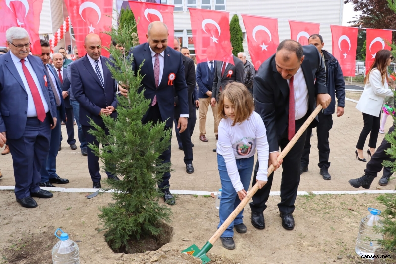 Program öncesinde Valimiz ve öğrenciler tarafından okul bahçesine çam ağacı fidanı dikildi.